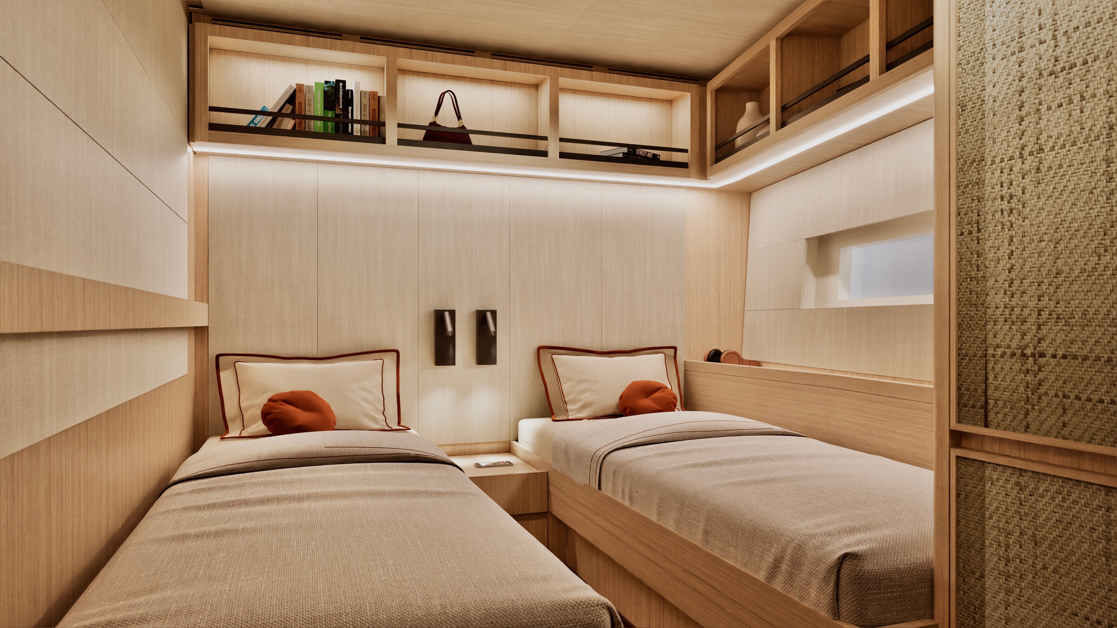Equipped with a full-hybrid propulsion system and next-generation batteries, the yacht reduces fuel consumption, noise, and emissions, offering a quieter, more sustainable way to experience the sea. Inside, bright and spacious interiors reflect Italian craftsmanship and contemporary design, creating an atmosphere of understated luxury. A yacht that blends performance, sustainability, and style, redefining modern luxury on the water.